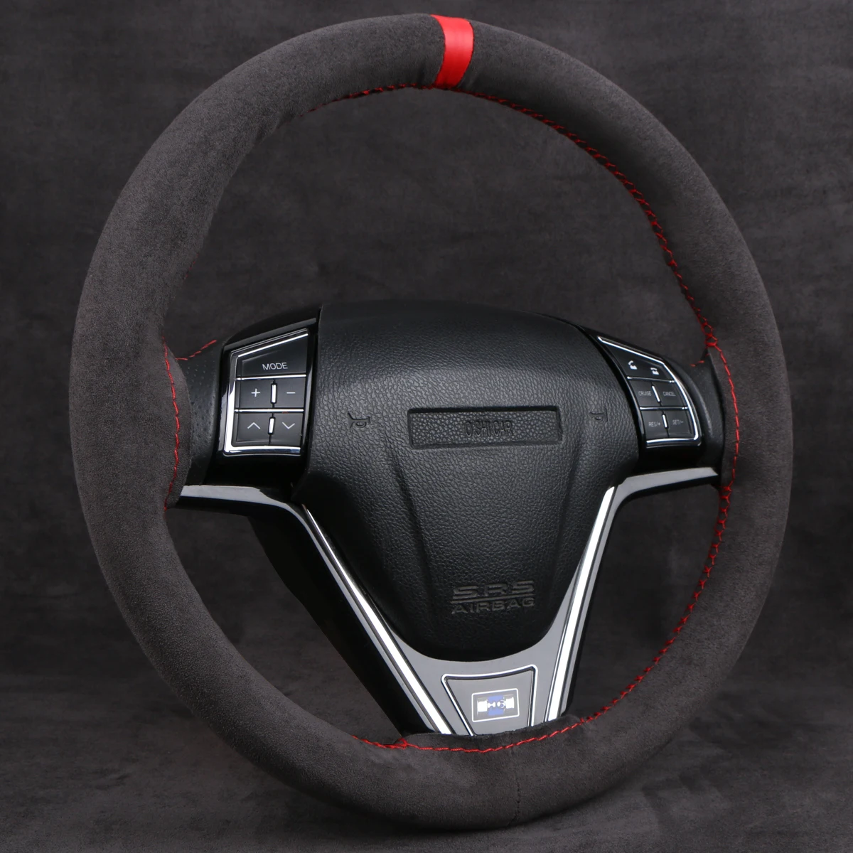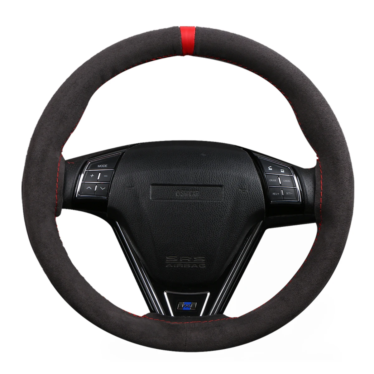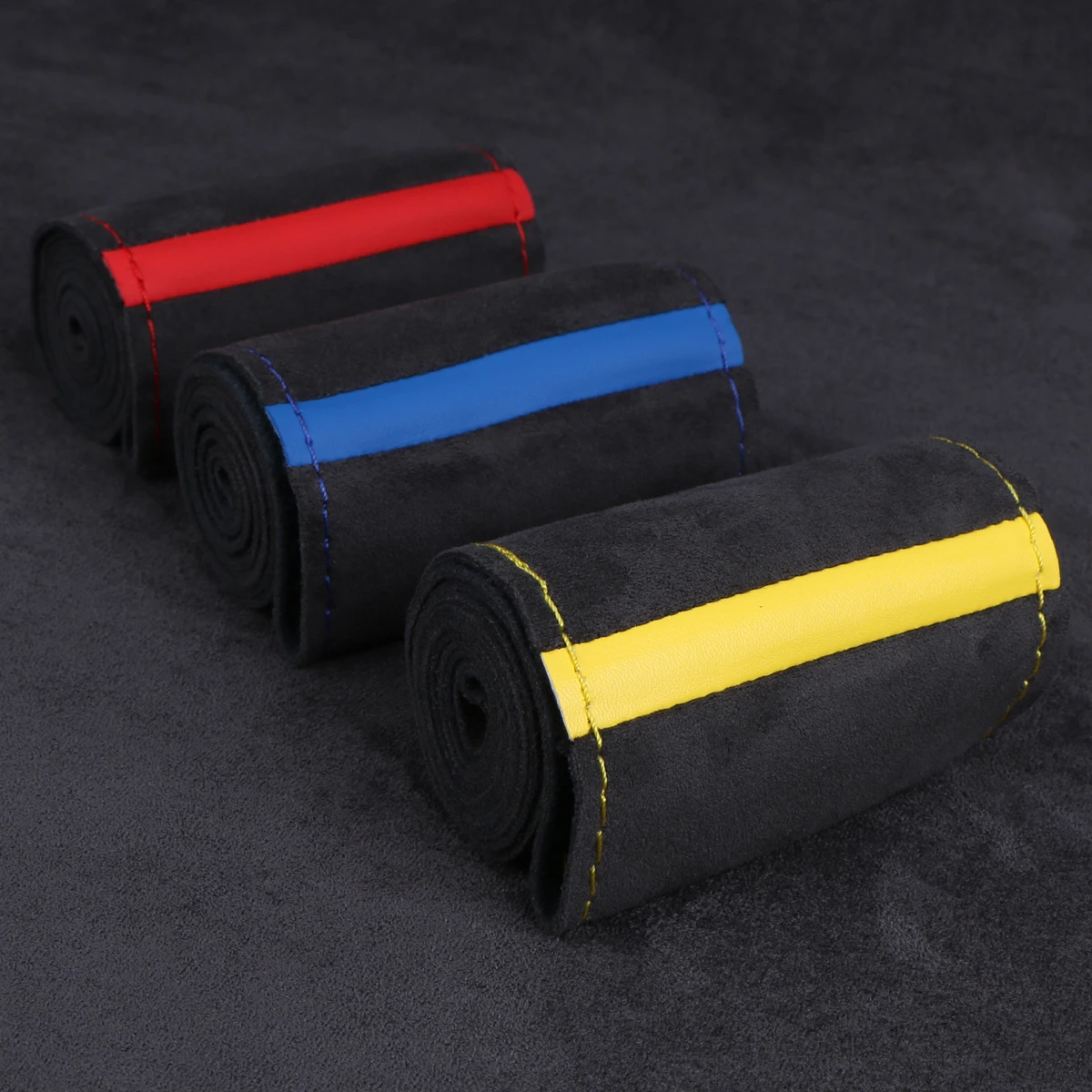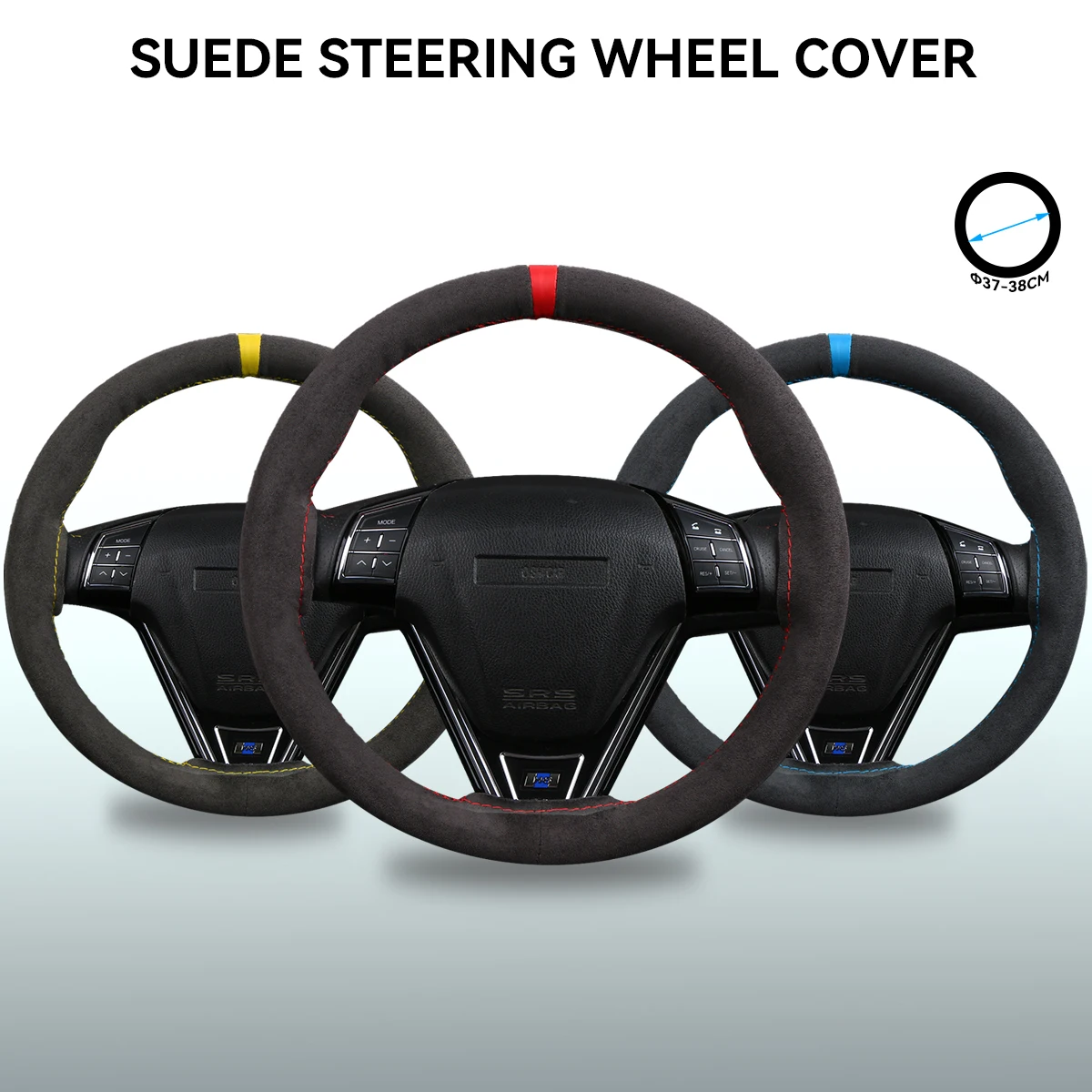 Comfortable and soft hand feeling. The steering wheel cover is stitched with two colors of artificial suede leather. You will enjoy driving when you get it.