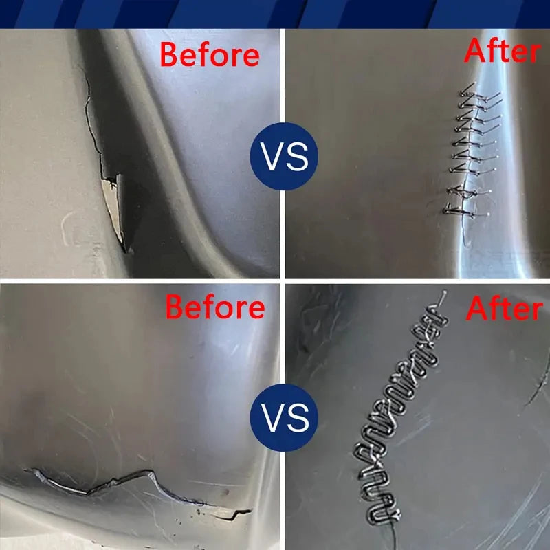 Diseño ondulado: El alambre de soldadura para reparación de parachoques es adecuado para grietas grandes o curvas. La soldadura y la reparación se realizan de forma cómoda y rápida con un pequeño dispositivo de calentamiento. Se utiliza para la reparación permanente de roturas, grietas y desgarros en piezas termoplásticas rígidas o flexibles.