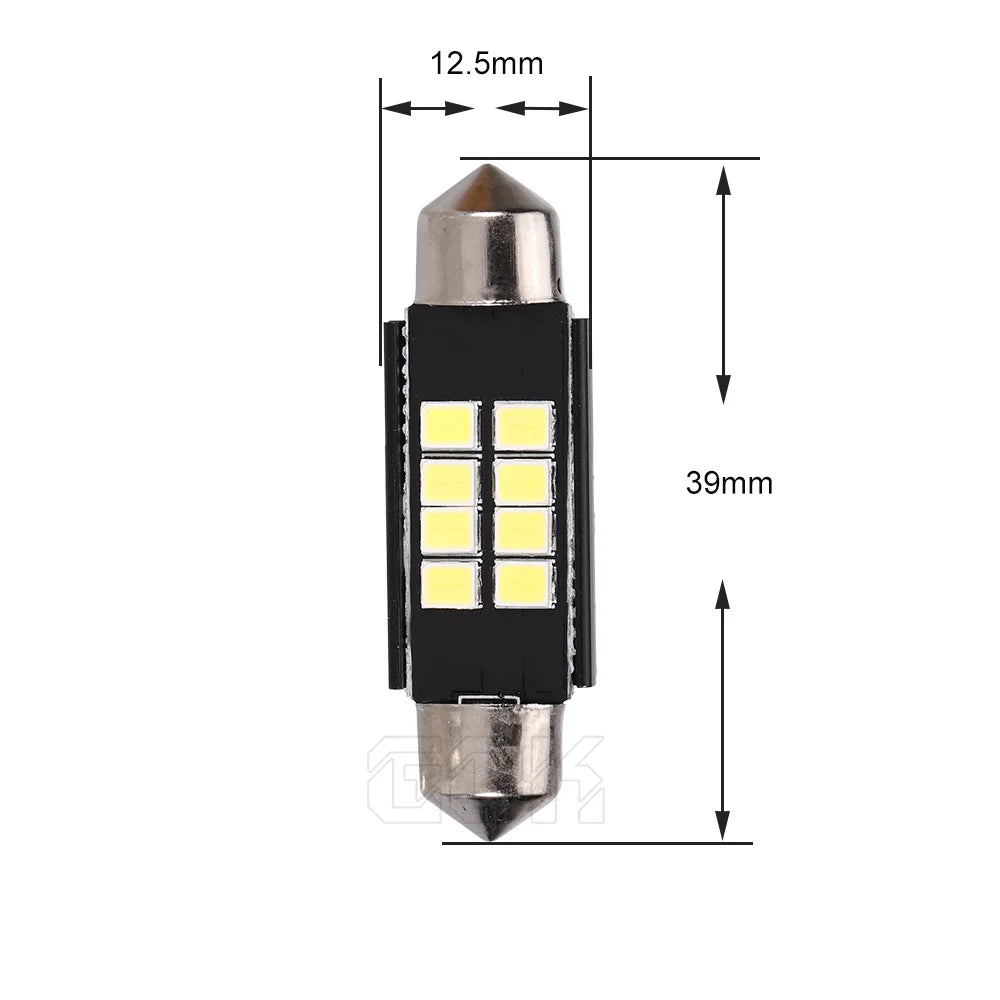 Esta bombilla LED SMD compatible con CAN-bus incluye resistencias de carga y está especialmente diseñada para vehículos europeos. Las aplicaciones comunes incluyen luces interiores, luces de techo, luces de mapas, luces de puertas, luces de maletero, luces de guantera, luces de matrícula, luces de espejo de visera y más.