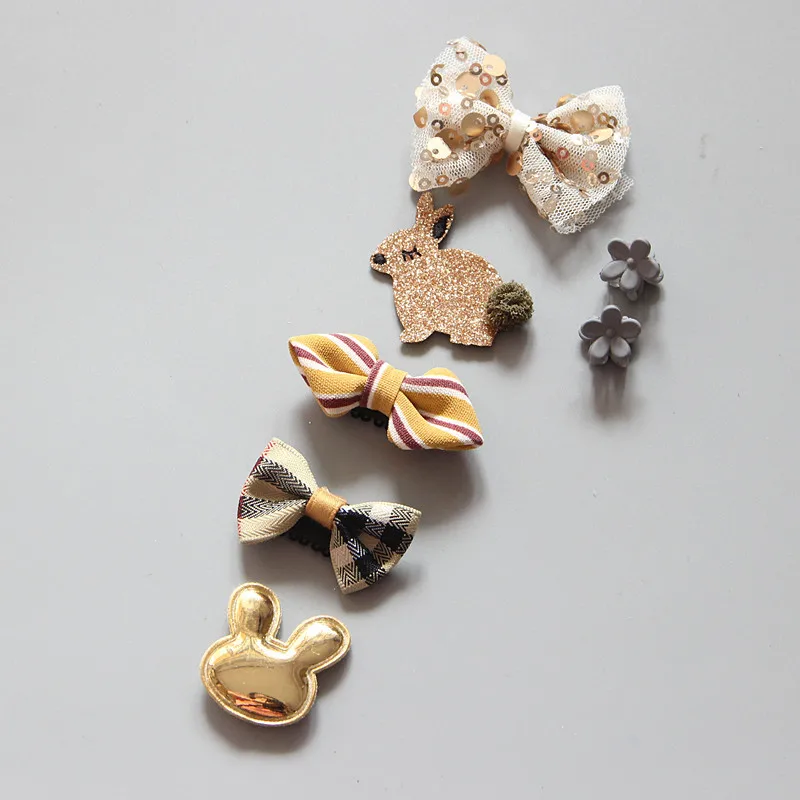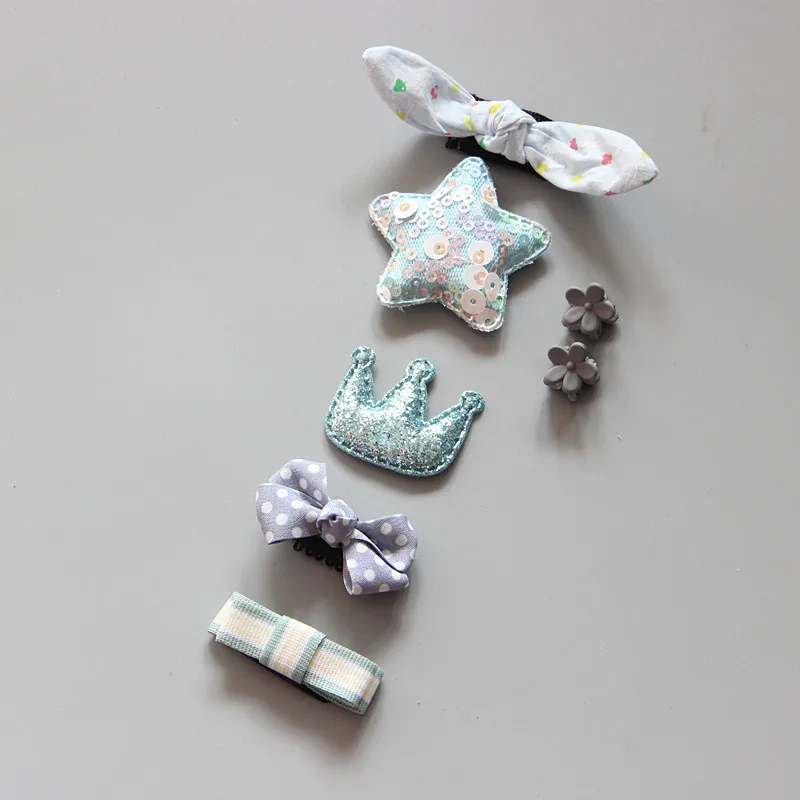 Juego de pinzas para el pelo con dibujos animados para niña, accesorios para la cabeza, pinzas cruzadas para el pelo, pasadores, 7 piezas