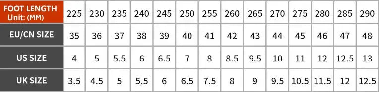 NOTE: Foot Length Unit (MM) , 260mm = 26cm = EU/CN SIZE: 42