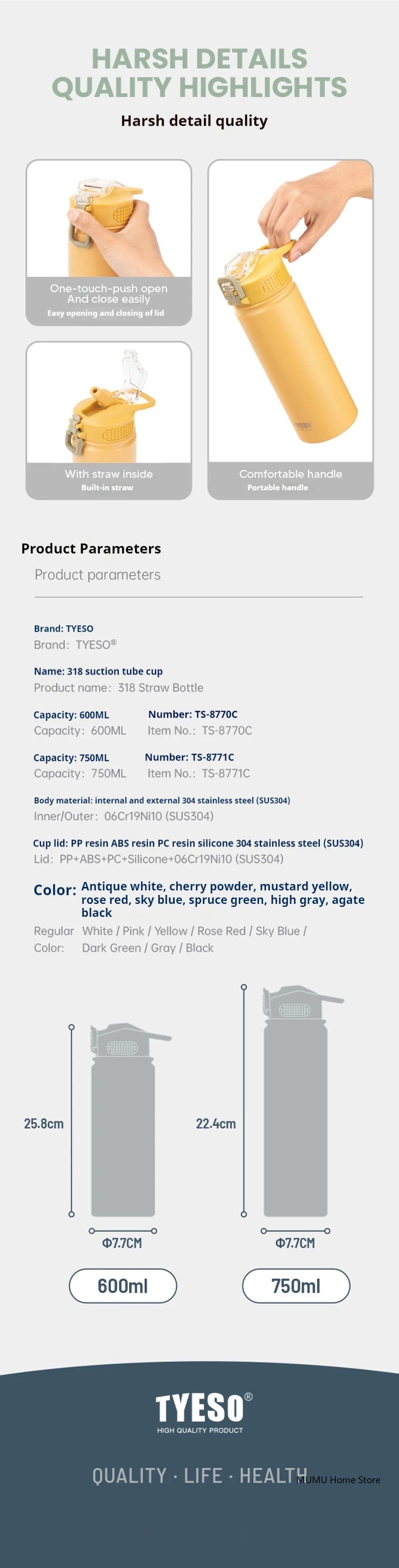 Feature 1: 600/750ml Thermos Bottle with Straw