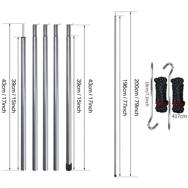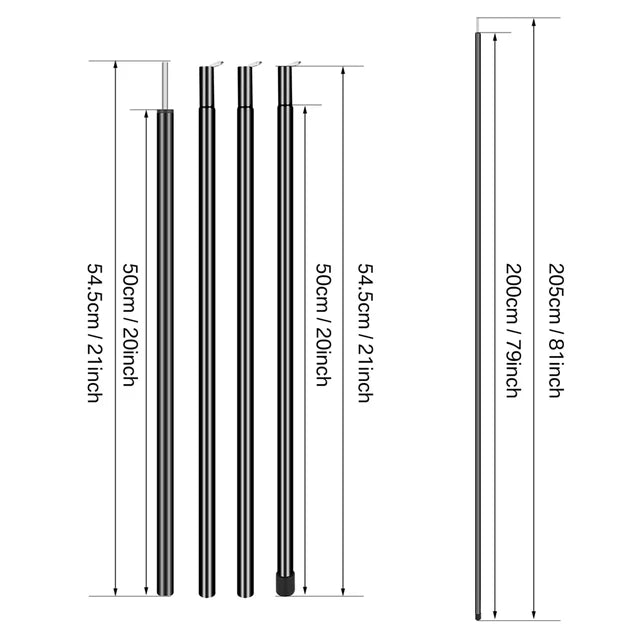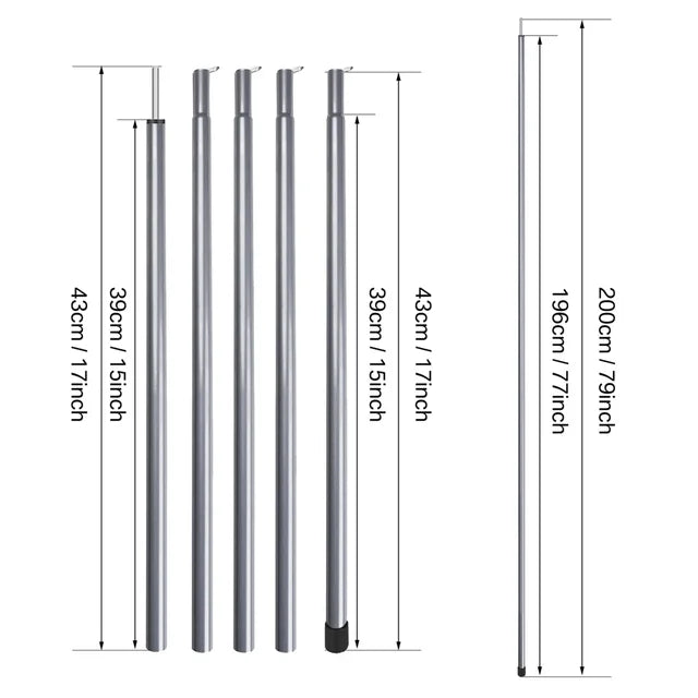 Los postes de la tienda se pueden dividir en 5 secciones, cada una con una altura efectiva de 39 cm/50 cm, y se pueden ensamblar libremente según sus necesidades.