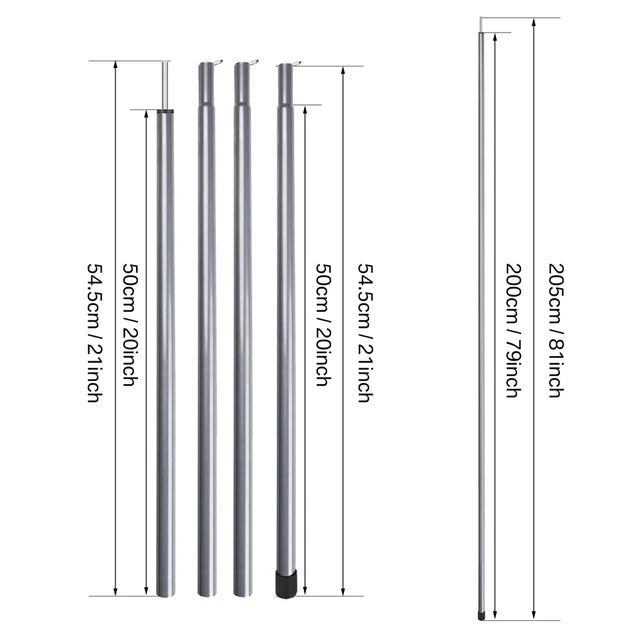 Los postes ajustables para carpas permiten formar un toldo cuando se usan como puerta. Fabricados en aluminio de alta calidad, el tapón de plástico en la parte inferior aumenta la fricción con el suelo para mayor estabilidad.