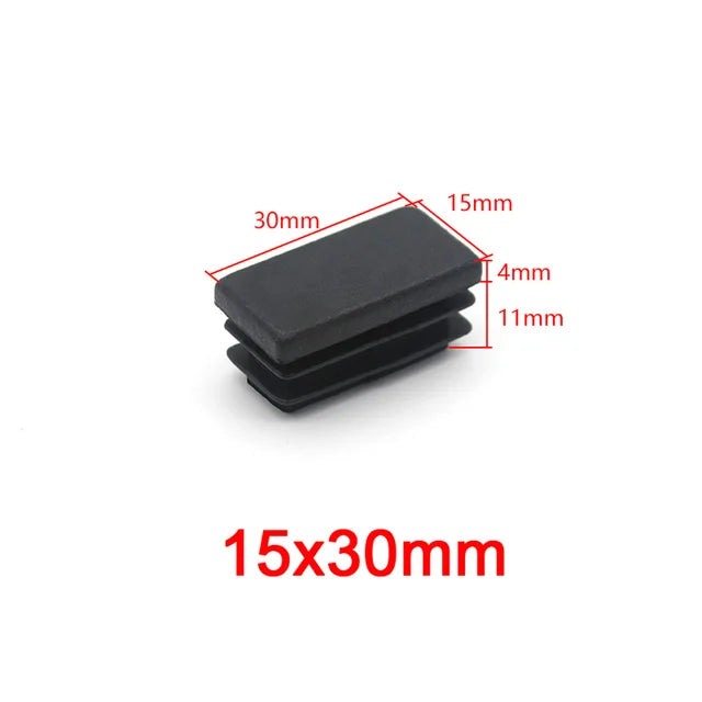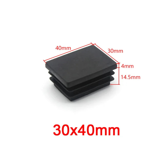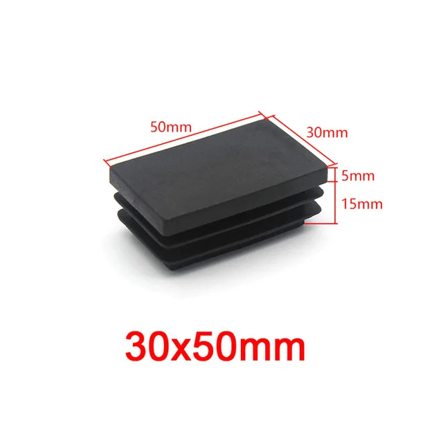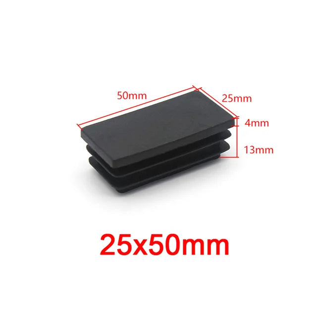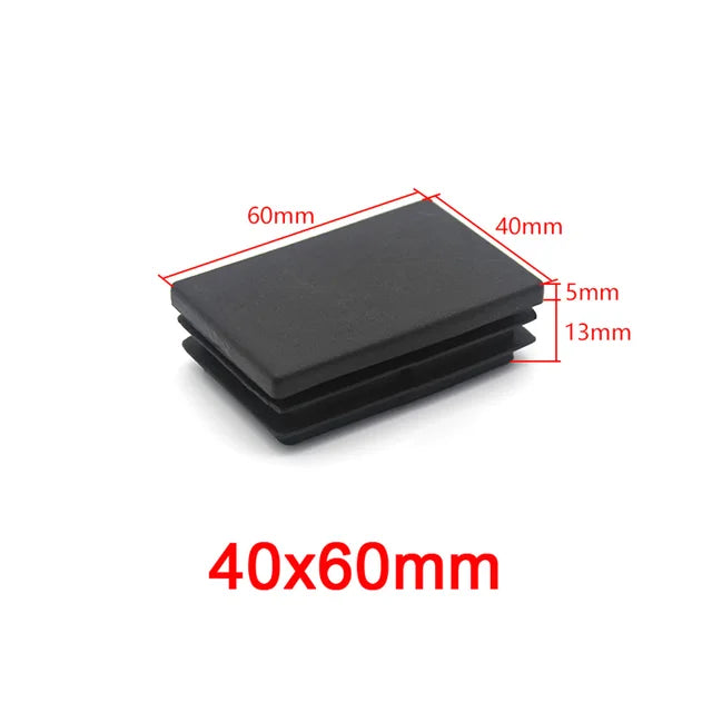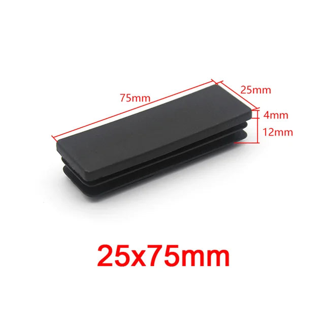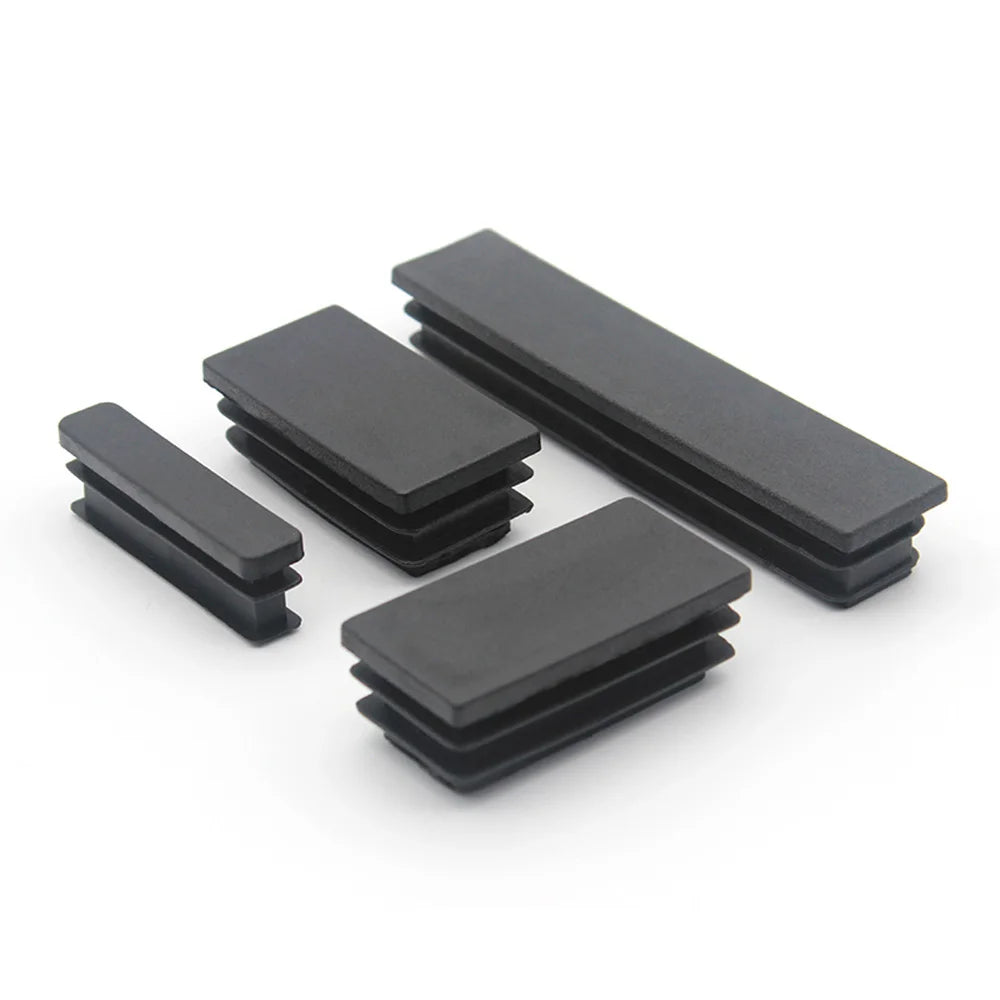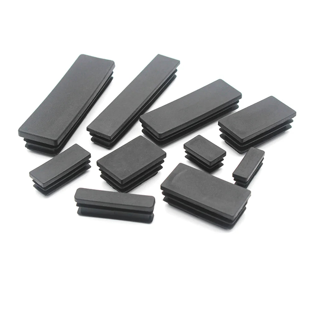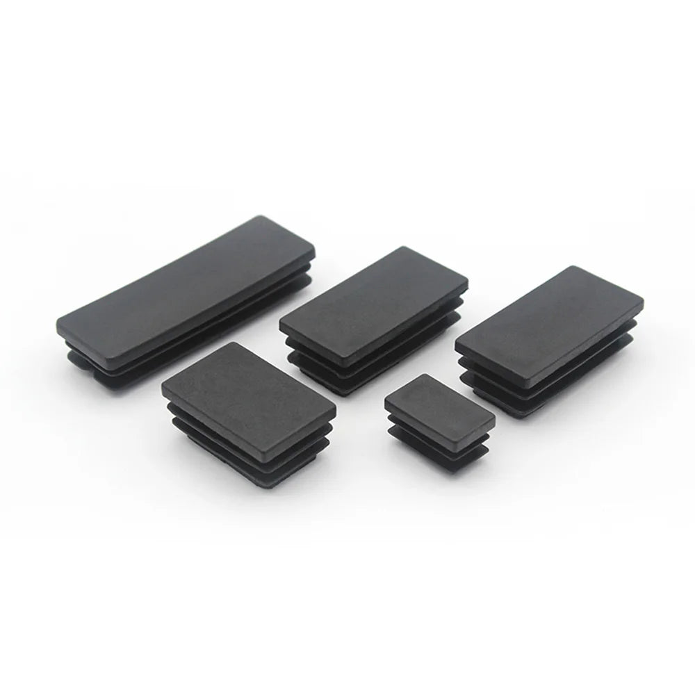 Tapón de plástico rectangular negro para extremos de tubos, insertos de tubo, tapón de acero