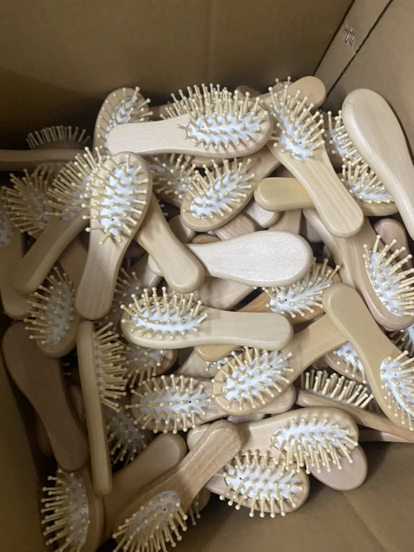 Peine para el cabello con bolsa de aire para masaje, peine de madera de bambú con cojín de aire, antiestático, para mascotas con saludo de mano, productos para el cuidado de mascotas.