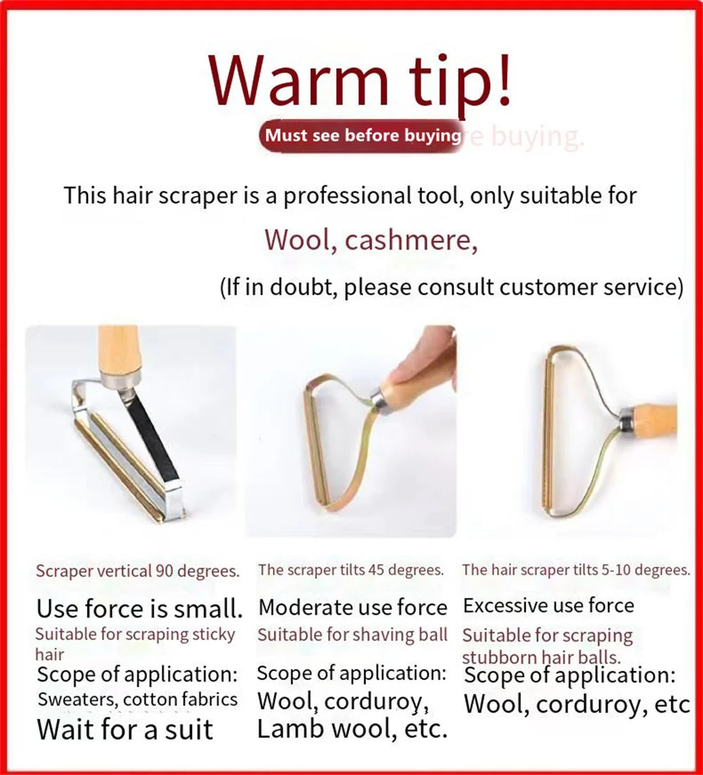 1. Este raspador de cabello es una herramienta profesional, solo adecuada para lana y cachemira. (En caso de duda, consulte con el servicio de atención al cliente)