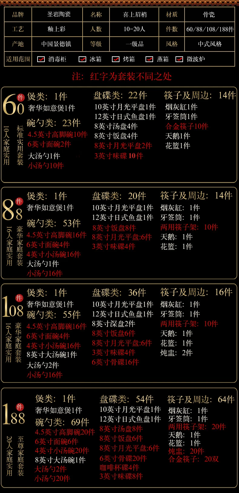 Product Selling Points 3: dishes sets full set