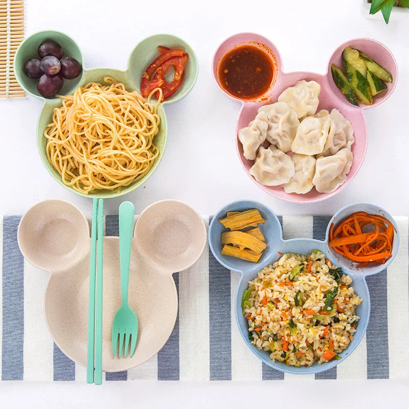 Kid Cartoon Mouse Mickey Bowl Plates Lunch Box Kid Baby Kids Infant Rice Food Bowl Plastic Dinnerware