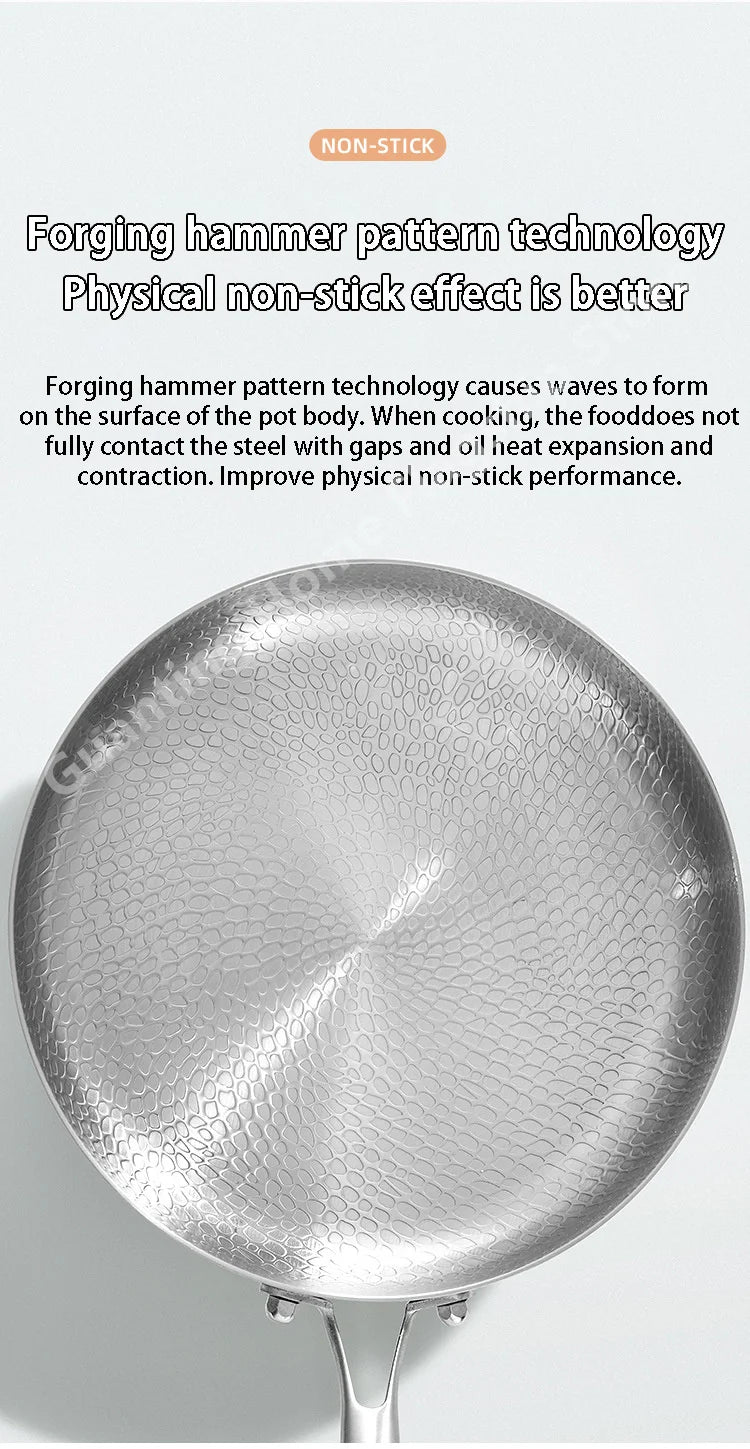 Titanium Stainless Steel Frying Pan Nonstick Wok Uncoated Pot Egg Steak Skillet Home Induction Cooker Gas Stove Kitchen Cookware