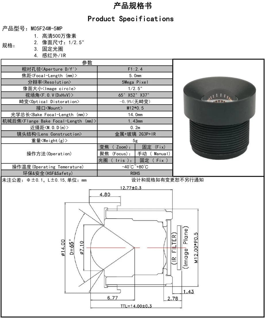 Lente CCTV de 5 MP y 5 mm con montura M12 sin distorsión para reconocimiento facial, lente de escaneo de baja distorsión
