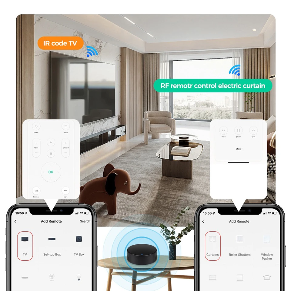 Compatible con copia y repetición RF. Compatible con cortinas, persianas, empujadores de ventanas, pantallas de proyección con gancho, puertas de garaje, puertas retráctiles, interruptores RF e incluso botones personalizados.