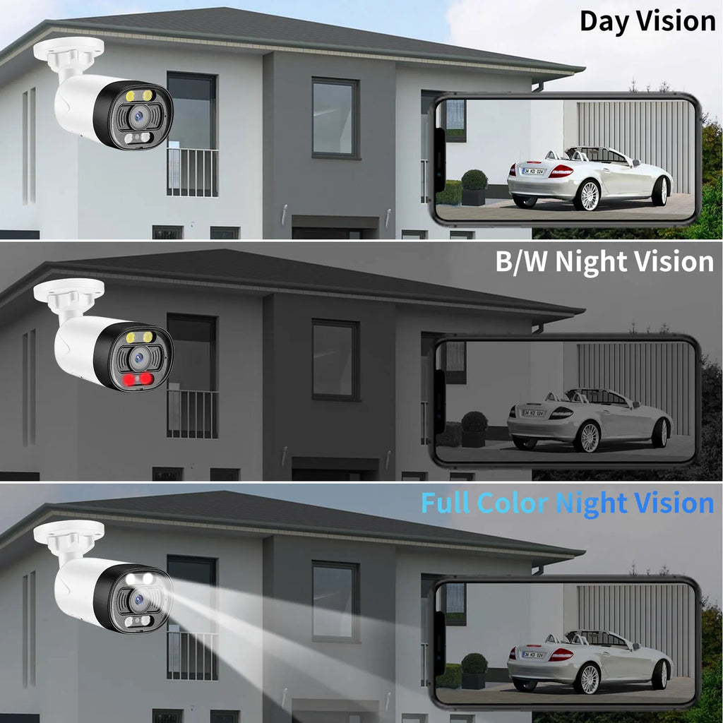 Cuando los LED blancos se encienden, la cámara mostrará una visión colorida por la noche, hay tres modos nocturnos para que usted seleccione.