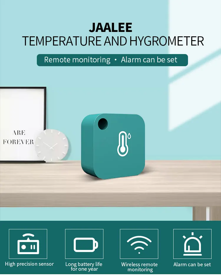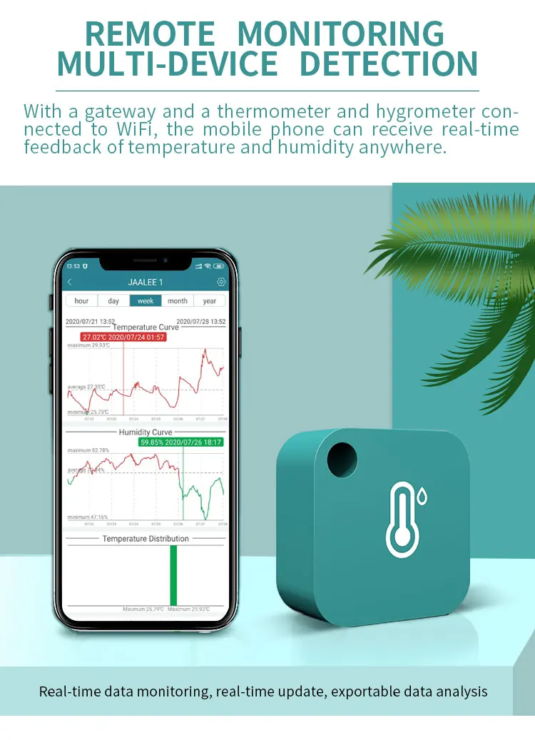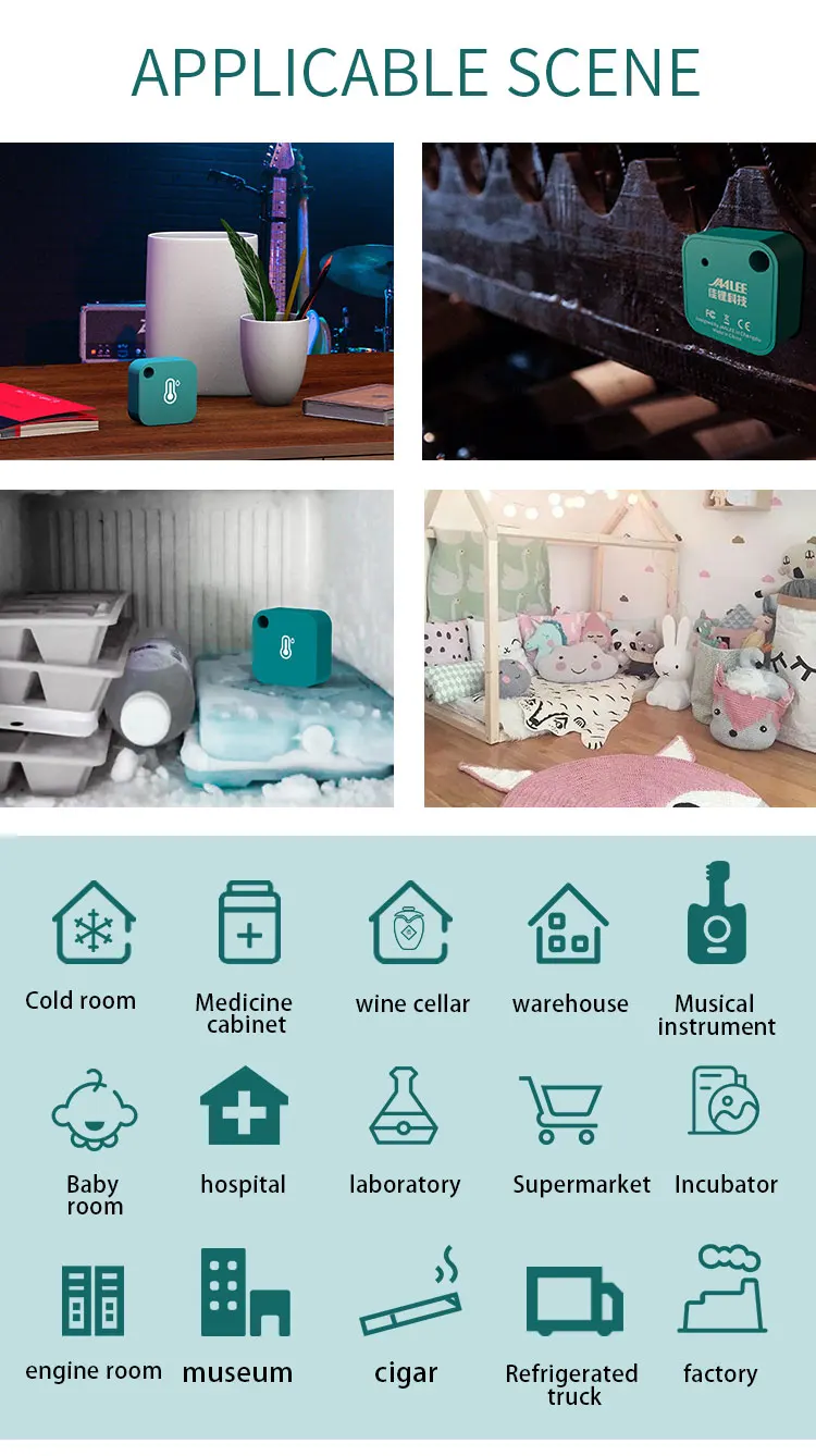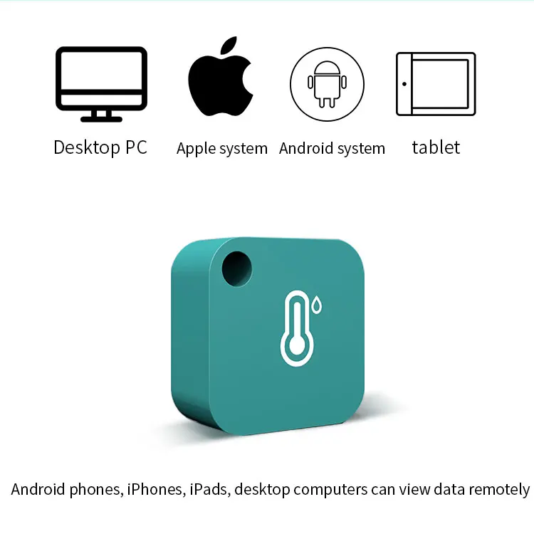 2. Si se combina la red de enlace Bluetooth a Wi-Fi, varios teléfonos móviles y ordenadores pueden consultar la temperatura y la humedad, ver el historial de forma remota y recibir la alarma de temperatura y humedad fuera de rango. Un enlace puede conectar 10 termómetros. Tras conectarse a Wi-Fi, se pueden consultar los datos entre provincias, fronteras y teléfonos móviles.
