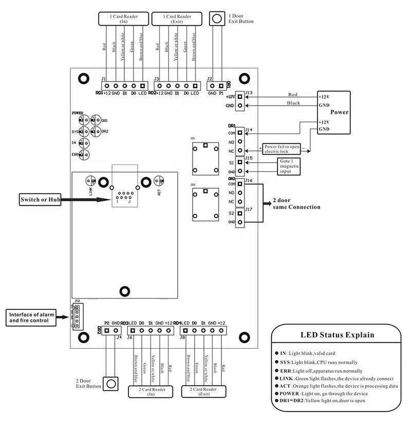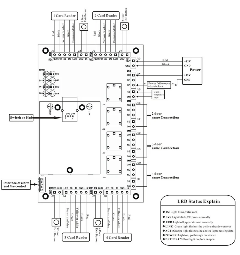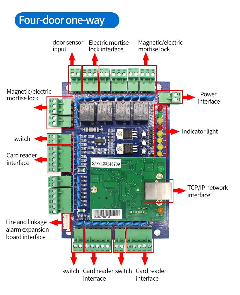 Red TCP IP 1 2 4 Puerta Placa de control de acceso Wiegand Los datos se pueden transferir Conéctese con cualquier lector de salida Wiegand 26 ~ 37