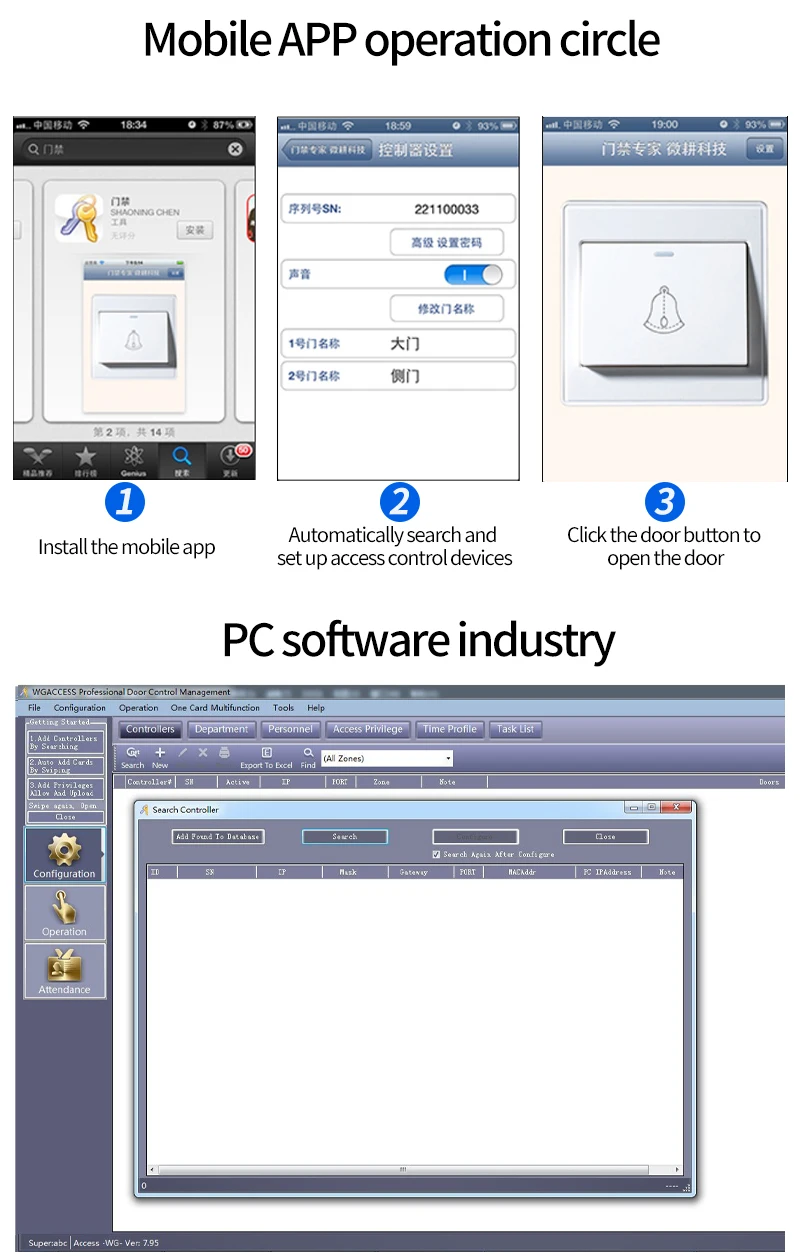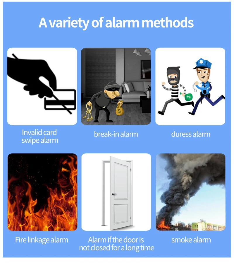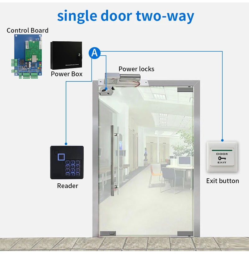 Controla 2 puertas, entra y sal por la puerta deslizando la tarjeta, o entra deslizando la tarjeta y sal por la puerta presionando el botón. |