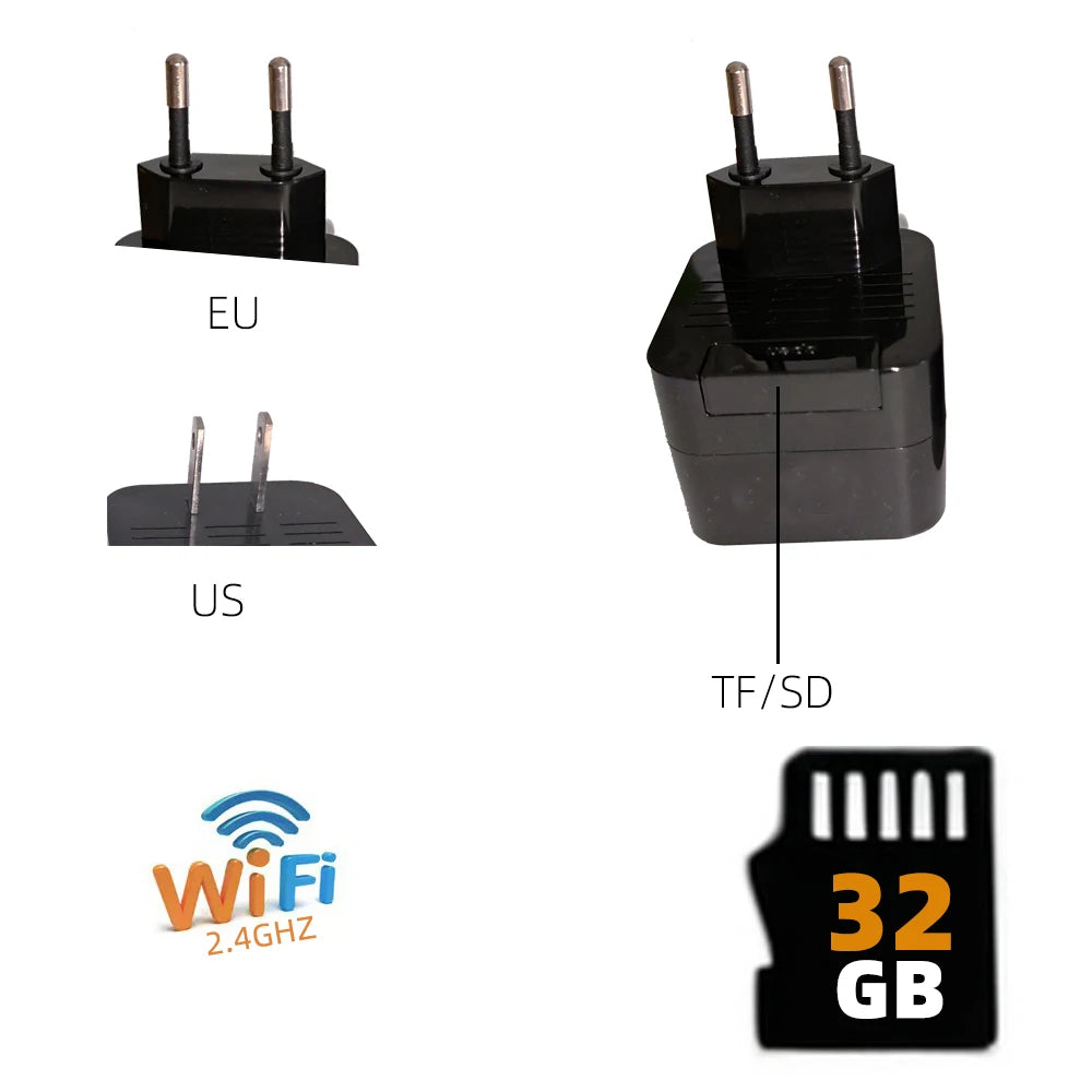 Hay dos versiones de la cámara: europea y americana. Preste atención a las especificaciones antes de comprar. La lente de la cámara tiene 90 grados, admite visión nocturna y requiere encendido las 24 horas