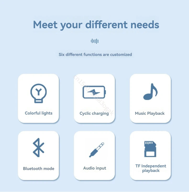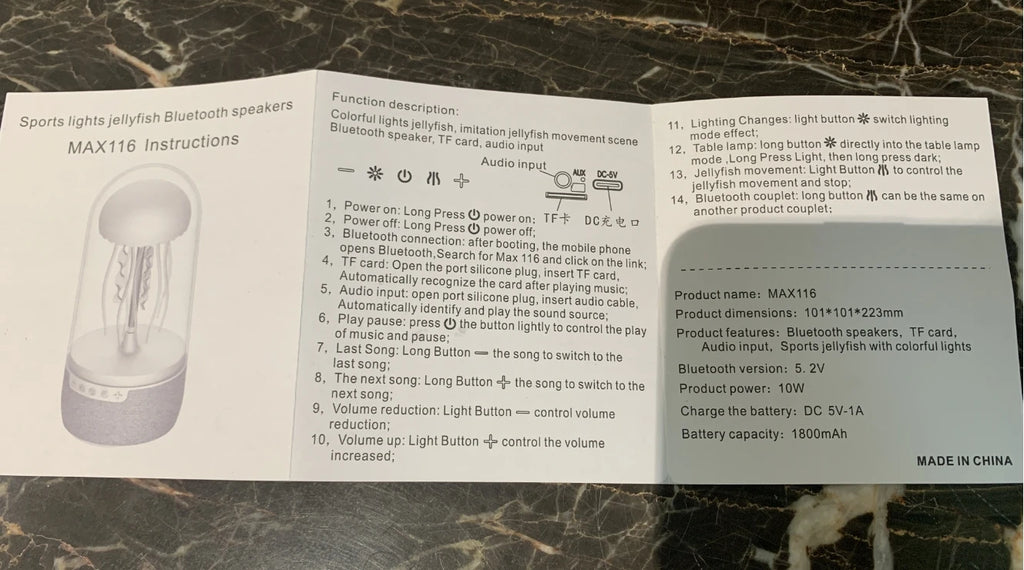 Note:The jellyfish speaker is composed of several gears that rotate simultaneously inside, so it is normal for there to be a slight rotational sound.