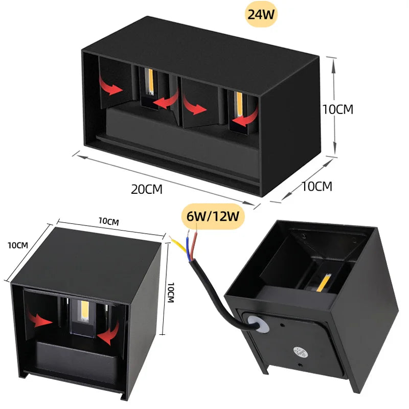 ●The LED wall light indoor/outdoor provides excellent lighting effect and IP65 waterproof performance. The modern design makes this 6W/12W/24W wall light ideal for indoor and outdoor scenes, such as bedrooms, living rooms, balconies, offices, corridors, gardens, courtyards, etc.