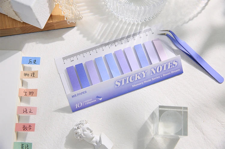 Introduction: 200 gradient index stickers. The ultimate multifunctional tool for all your note-taking needs! With its stylish gradient design and convenient index stickers, this memo book is perfect for organizing your thoughts and ideas. Its compact size makes it easy to carry wherever you go, making it an ideal tool for students, professionals, and anyone. Six different styles allow for personalization and are perfect for those who want to express their unique style. This pad is also ideal for use in the office or at home, making it a versatile addition to any regular supply collection. Don't settle for a plain notepad - upgrade to Mr. Paper simple Morandi Gradient memo pad today and experience the ultimate note-taking experience!