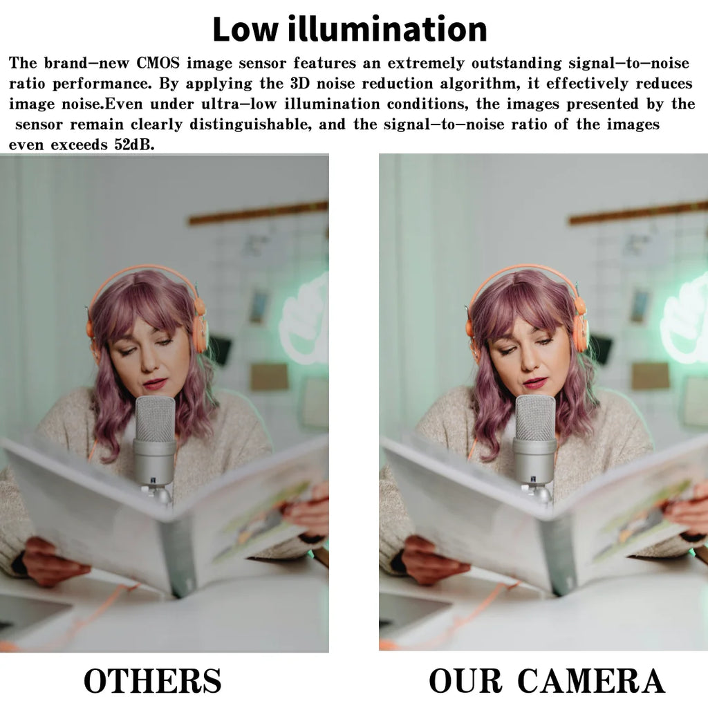 It applies 2D and motion estimation-based 3D noise reduction algorithms, and uses a new generation of low-noise sensors, effectively reducing noise.