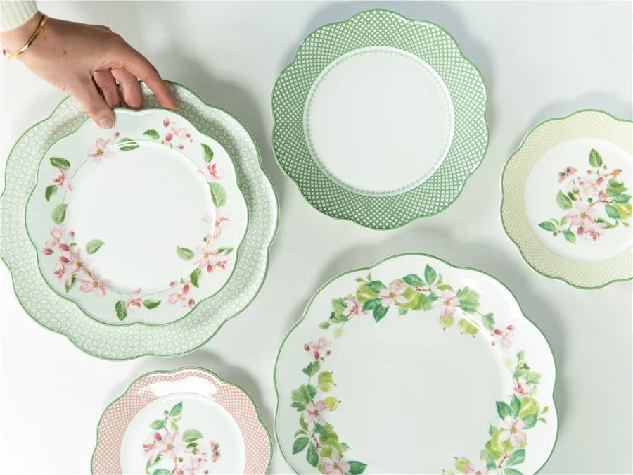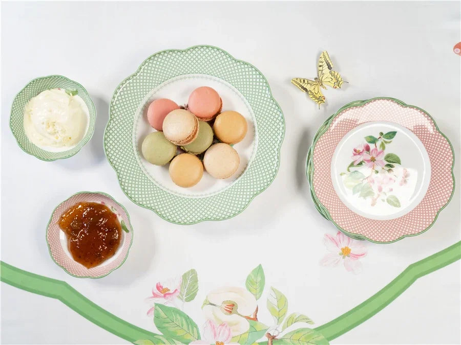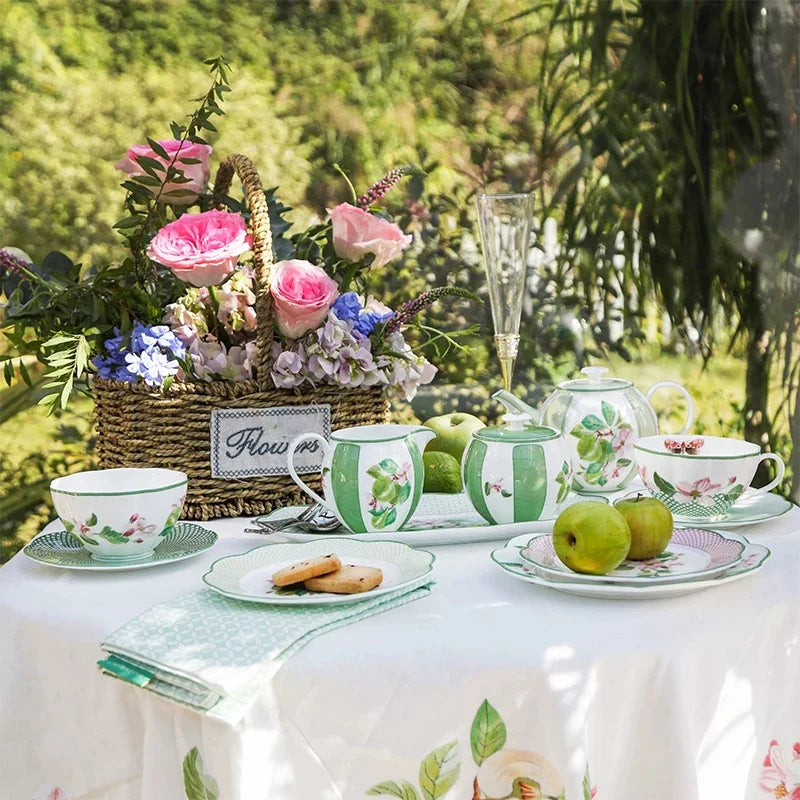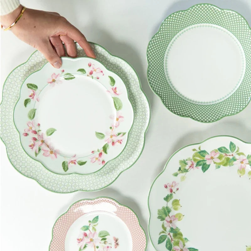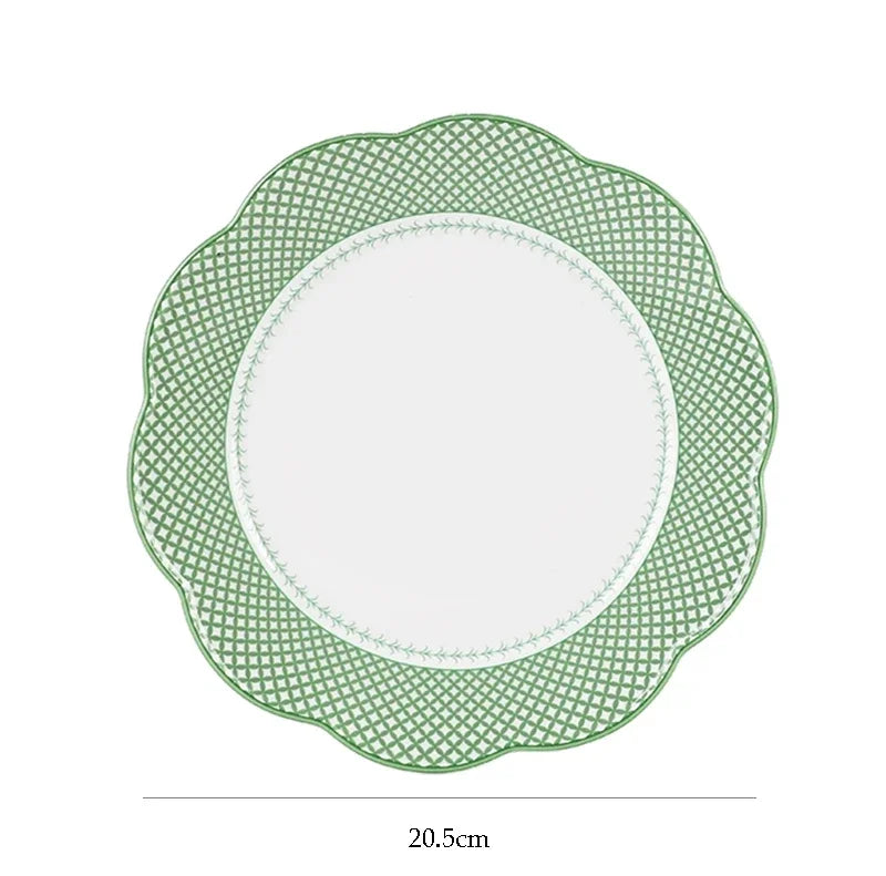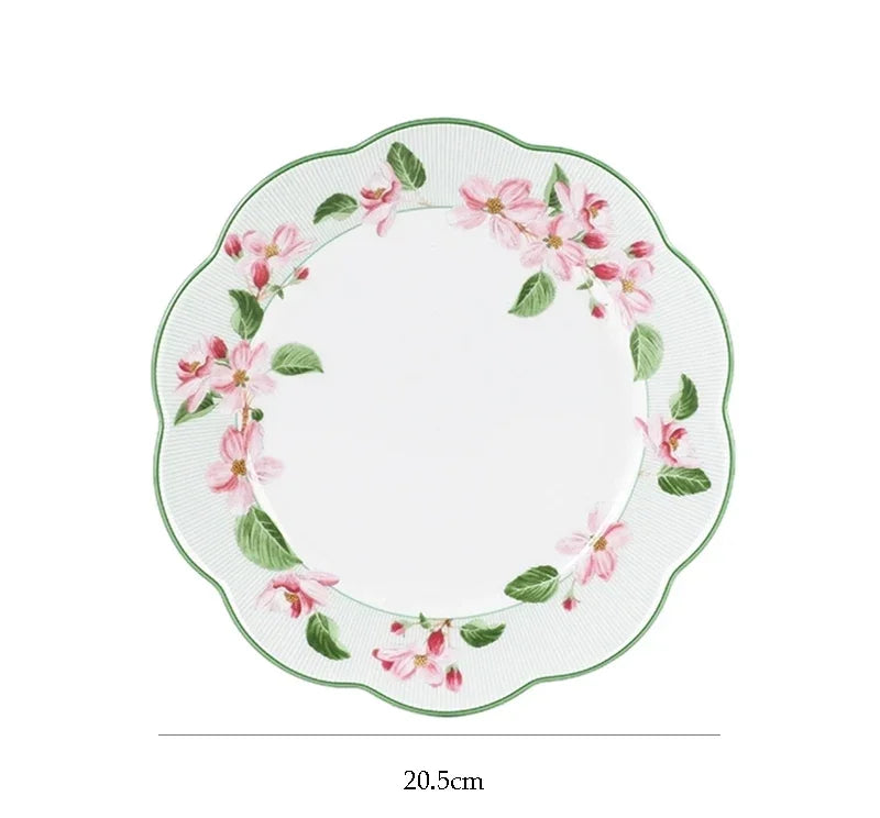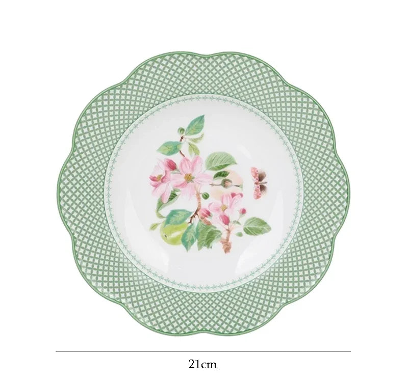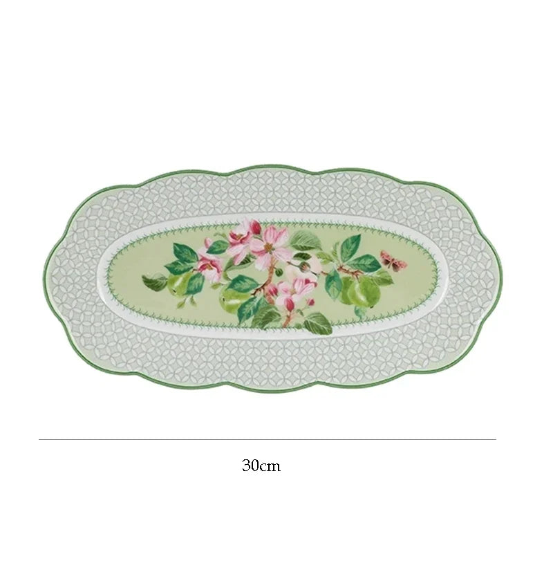 Ceramic Plate Household Bone China Dinner Plate Set Vintage Green Flower Dishes Tableware Oval Large Tray Dinnerware Sets