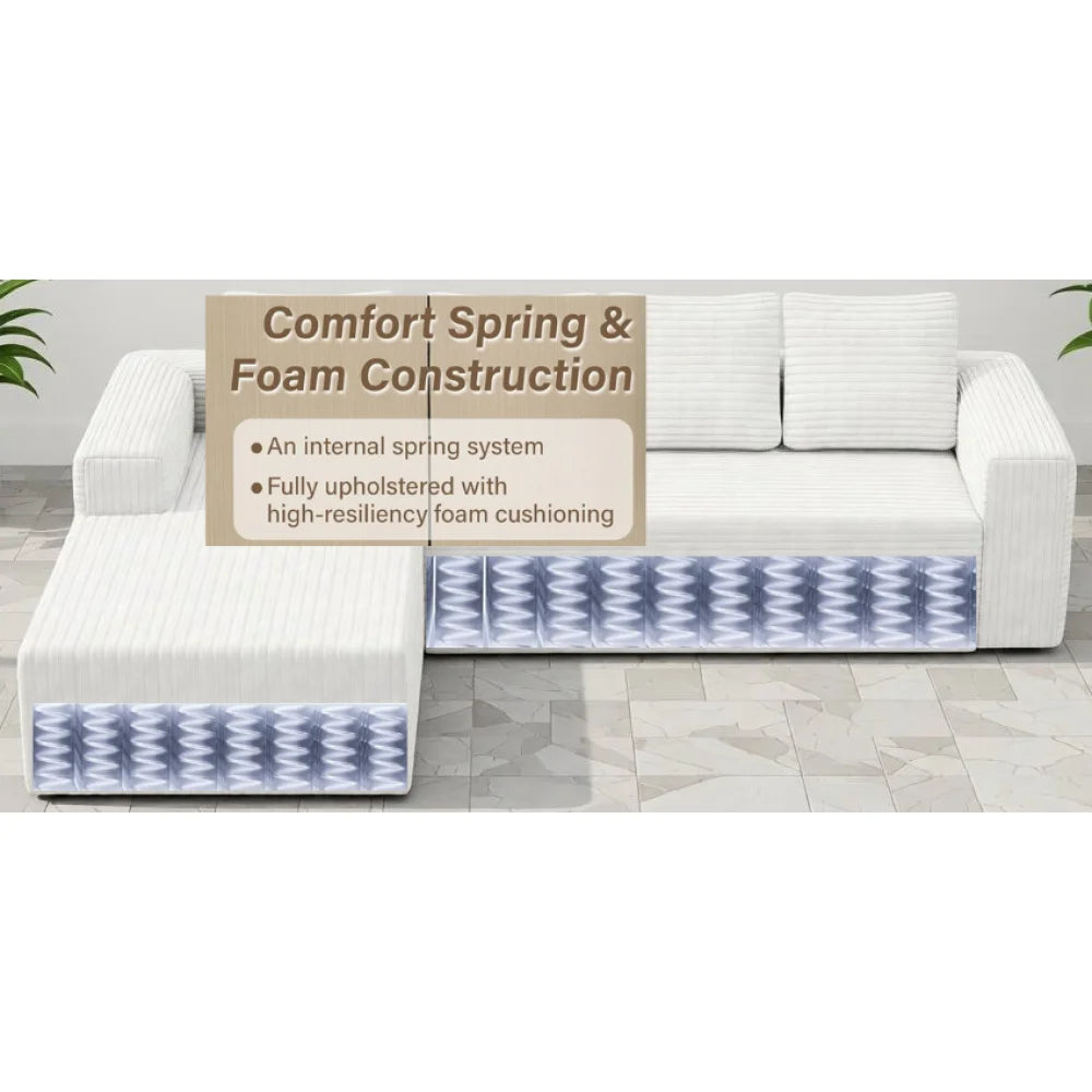 - Comfortable Chaise Lounge Couch】Indulge in luxurious comfort with our reversible sofa set, offering expansive cloud-like seating. Delight in sublime relaxation with our sleeper sofa featuring a chaise, meticulously crafted with a high-resilience sponge structure and spring pack support. Experience seating that contours to your body, surpassing the comfort of traditional sofas