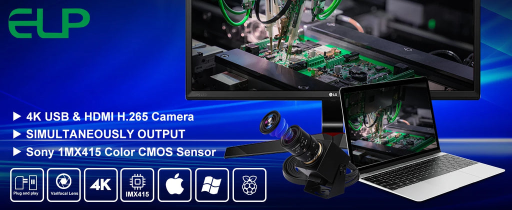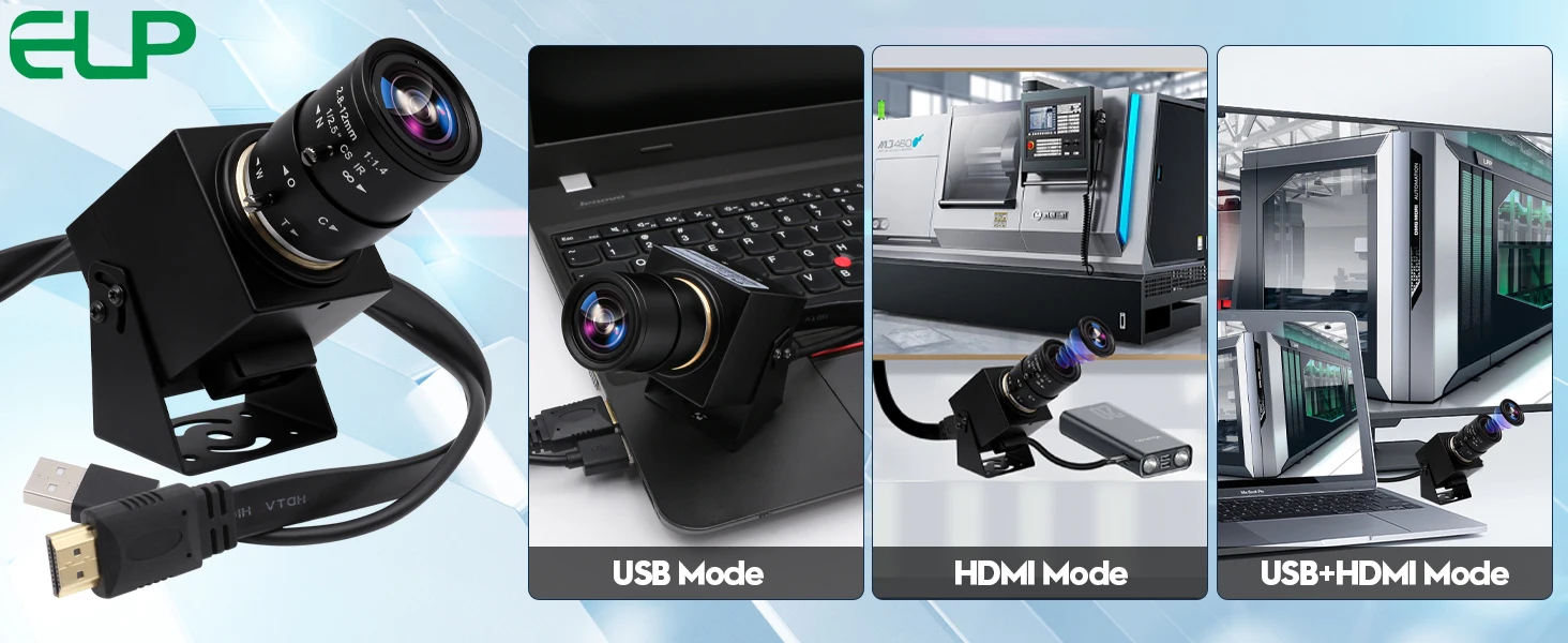 This 4K ELP-USB4KCAM01H USB HDMI Camera Module is a New member of ELP Cameras Family in 2023. It adopt 1/2.8" IMX415 Color CMOS sensor. With powerful H.265 Video Compression& H.265 Video format, provides you Ultra Smooth Uploading Experience. It can achieve Ultra HD 3840x2160 30fps,also Full HD 1080P 30fps Video Output. Support Type C and HDMI Dual Output simultaneously. With 2.8-12mm or 5-50mm Manual focus zoom Lens, enable 2X digital Zoom and 4X or 10X optic Zoom for super clear details images.