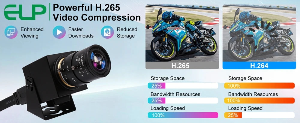 -- Besides the standard H.264/ MJPEG/ YUY2 compress format, powerfull H.264 also support .